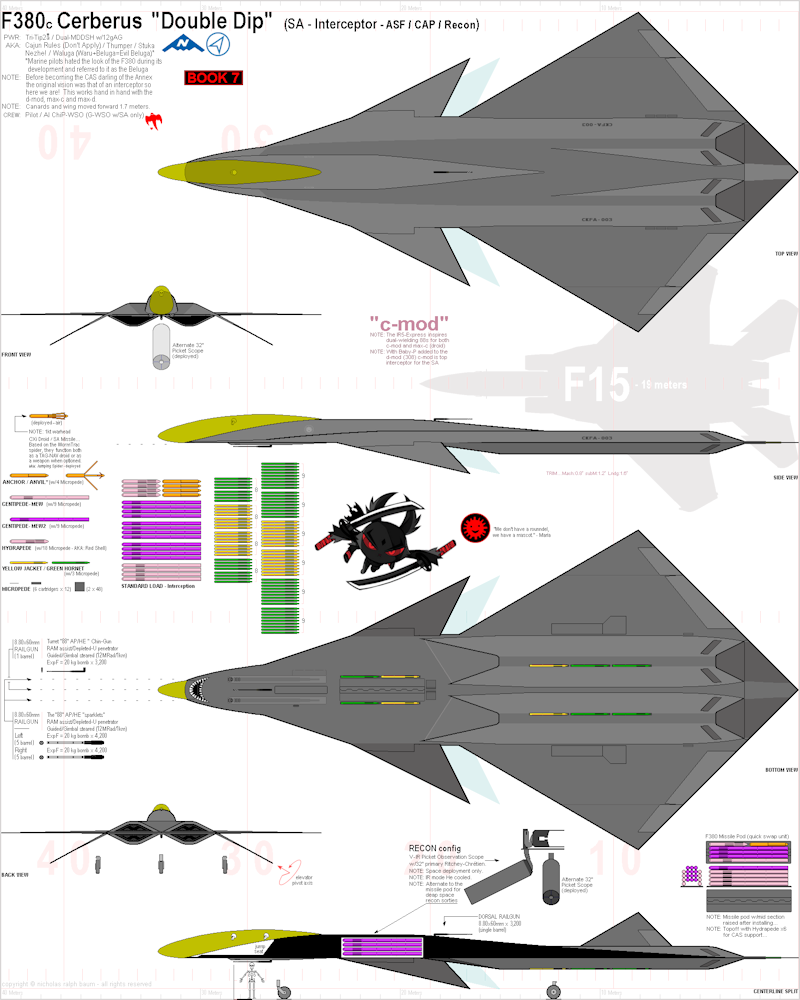 NOTE: Development of the duel-wielding c-mod will be put off till book 7 for the F308xd with Baby-P gun!
